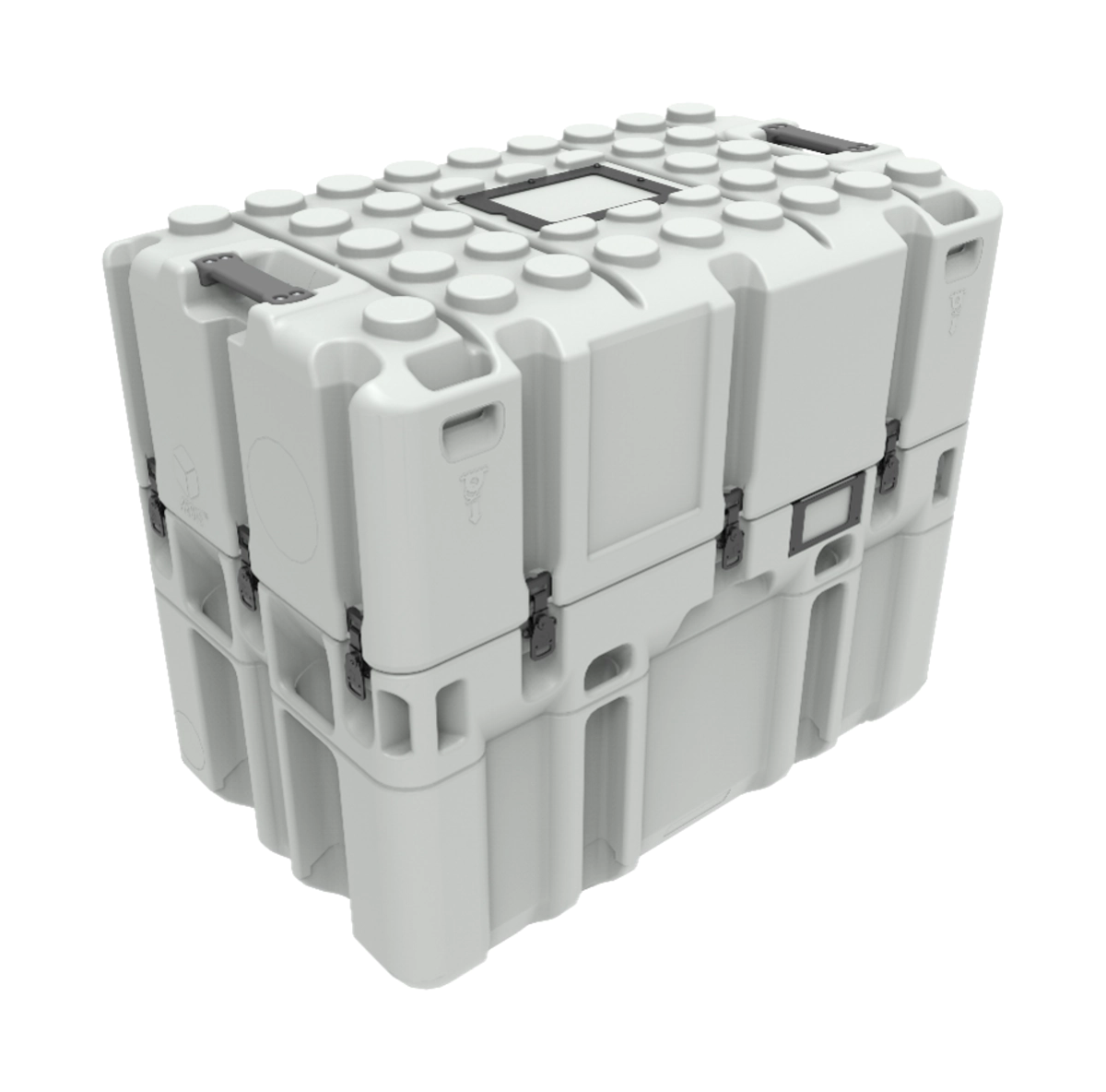 • All case features are moulded-in, eliminating any piercing of the case envelope - removing potential leak paths (Applies to: Integral handles, tie-down points, lifting eyes, optional document tube, desiccant tubes, pallet feet).