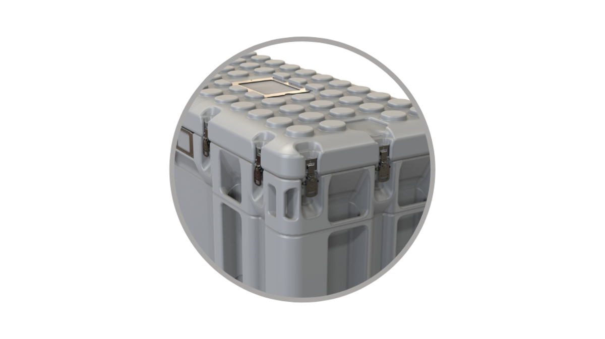 - All case features are moulded-in, eliminating any piercing of the case envelope - removing potential leak paths (Applies to: Integral handles, tie-down points, lifting eyes, optional document tube, desiccant tubes, pallet feet).