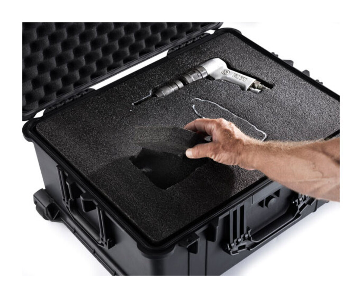 Multilayer Foam is an easy and professional way to organise and protect your equipment. All you need is a marker, a sharp knife, and your fingers. Multilayer Foam is a PE specialty foam that is pre-laminated in layers and can be easily cut and shaped to fit your equipment, tools, etc., precisely. Forget about troublesome pick-foam that crumbles, is soft, and can only be adjusted in squares, yet still falls apart after a short time. With multilayer foam, you get a medium-hard foam type that you can quickly customise to your equipment by cutting around it and simply peeling the foam to the depth you desire.