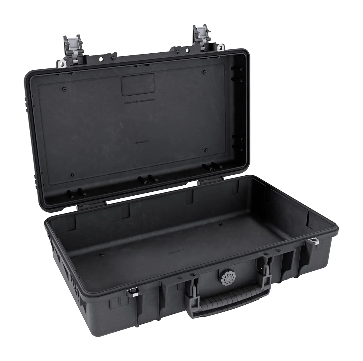 Medium-size watertight case, injected with proprietary copolymer PP that makes the case more resistant and lighter weight than other similar products. It is IP67 and MIL Stan certified to be resistant to impact, liquids and shocks.