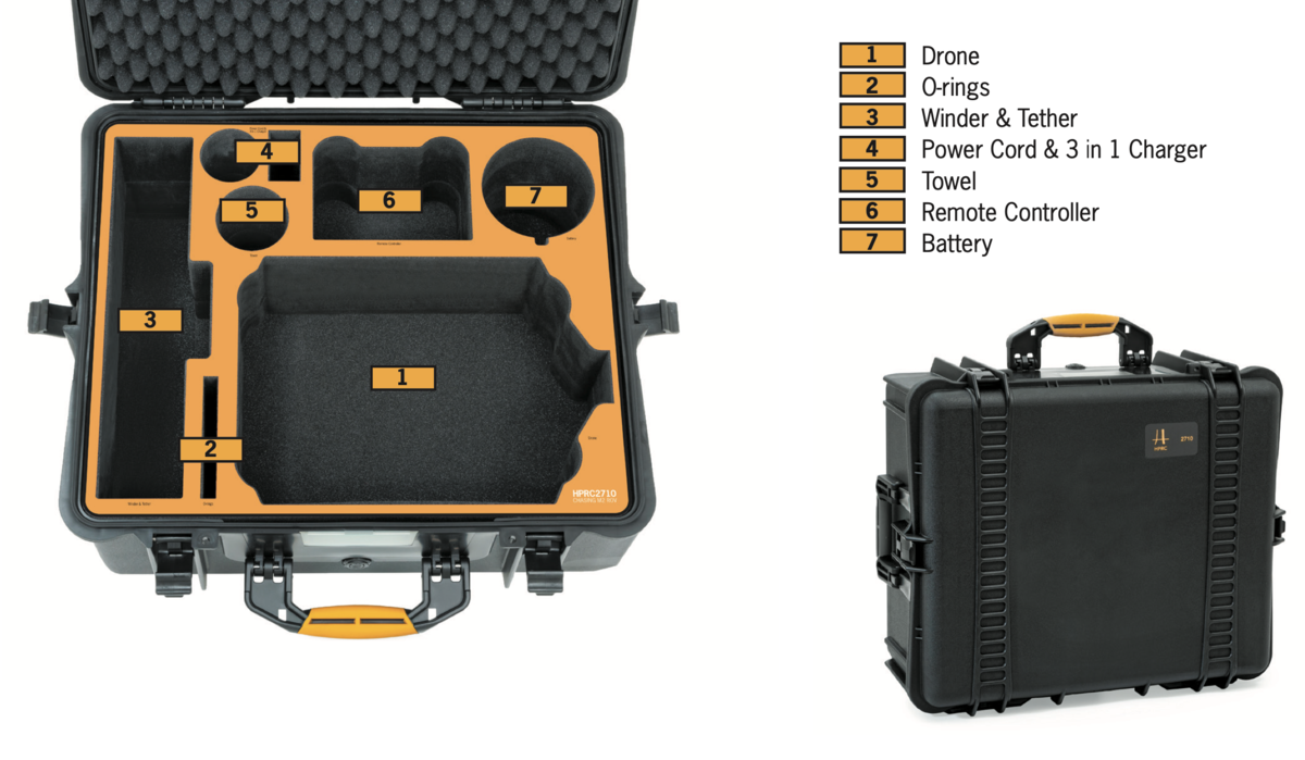 The HPRC M2R-2710-01 case is specifically designed to protect and transport the underwater drone M2 ROV and all its accessories guaranteeing the utmost protection and lightness. As the whole HPRC range, the case is impact, drop and corrosion resistant.