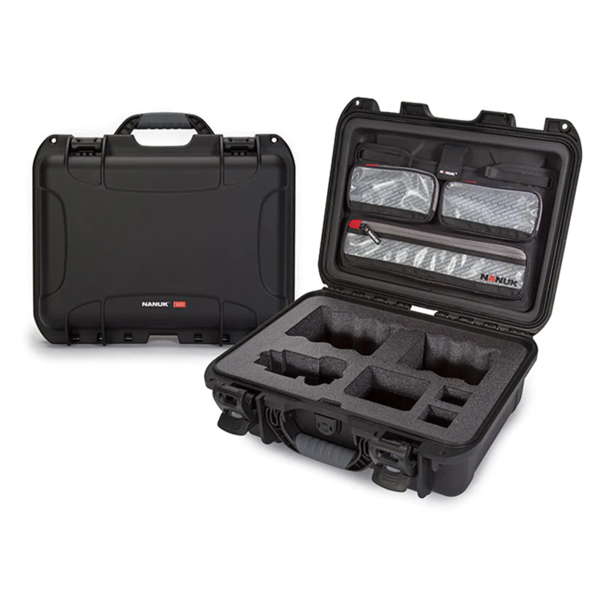The NANUK 920 for Sony ® A7R size camera case is designed to offer compartmentalized protection and organization for your photo and video gear. The pre-cut foam that will securely hold one Sony ® A7R size camera, an adjustable compartment to hold bigger objectives such as the 70-200mm or two smaller lenses. This case has room for 4 batteries to make sure all gear can be accommodated for transport. Additional compartments are available for storing important accessories such as flash drives, USB cables, charging hub and more. This case package also includes our new Lid Organizer, the ideal organization and convenience accessory for your case. The molded interior is designed to help keep your hardware, power cords and accessories entirely organized and in view. The lid organizer includes a set of mounting screws for easy, stress-free installation. Features include three zippered and anti-tear compartments of various sizes for lots of gear storage.