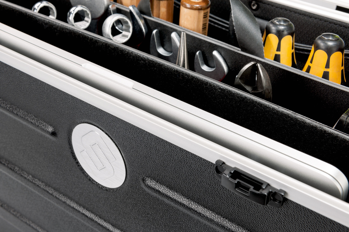 The LAPTOOL case is the perfect solution for the modern service technician. Today, it is important not only to have special tools quickly at hand in most of the situations, but also to be able to perform important software updates directly on site. The sturdy LAPTOOL by PARAT in pilot case design makes both possible. In addition to a compartment for notebooks or tablets up to a maximum size of 17’’, the case also comes with one fixed and one removable tool board plus CP-7 tool holders, which can firmly hold up to 39 tools.