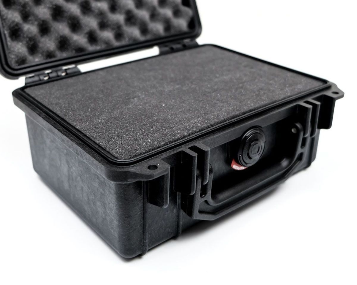 The Peli 1150 is made of Ultra High Impact structural copolymer that makes it extremely strong and durable. Its 6.4 mm neoprene o-ring and ABS latches seal perfectly and includes an automatic purge valve for quick equalisation after changes in atmospheric pressure.