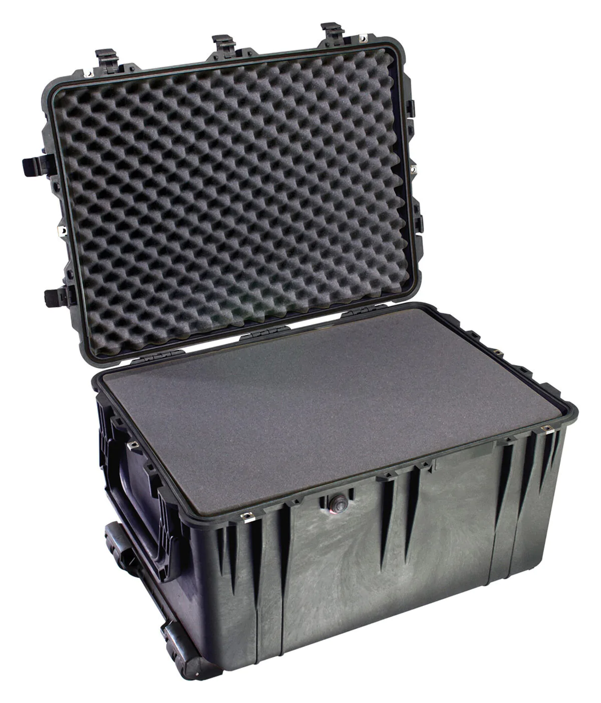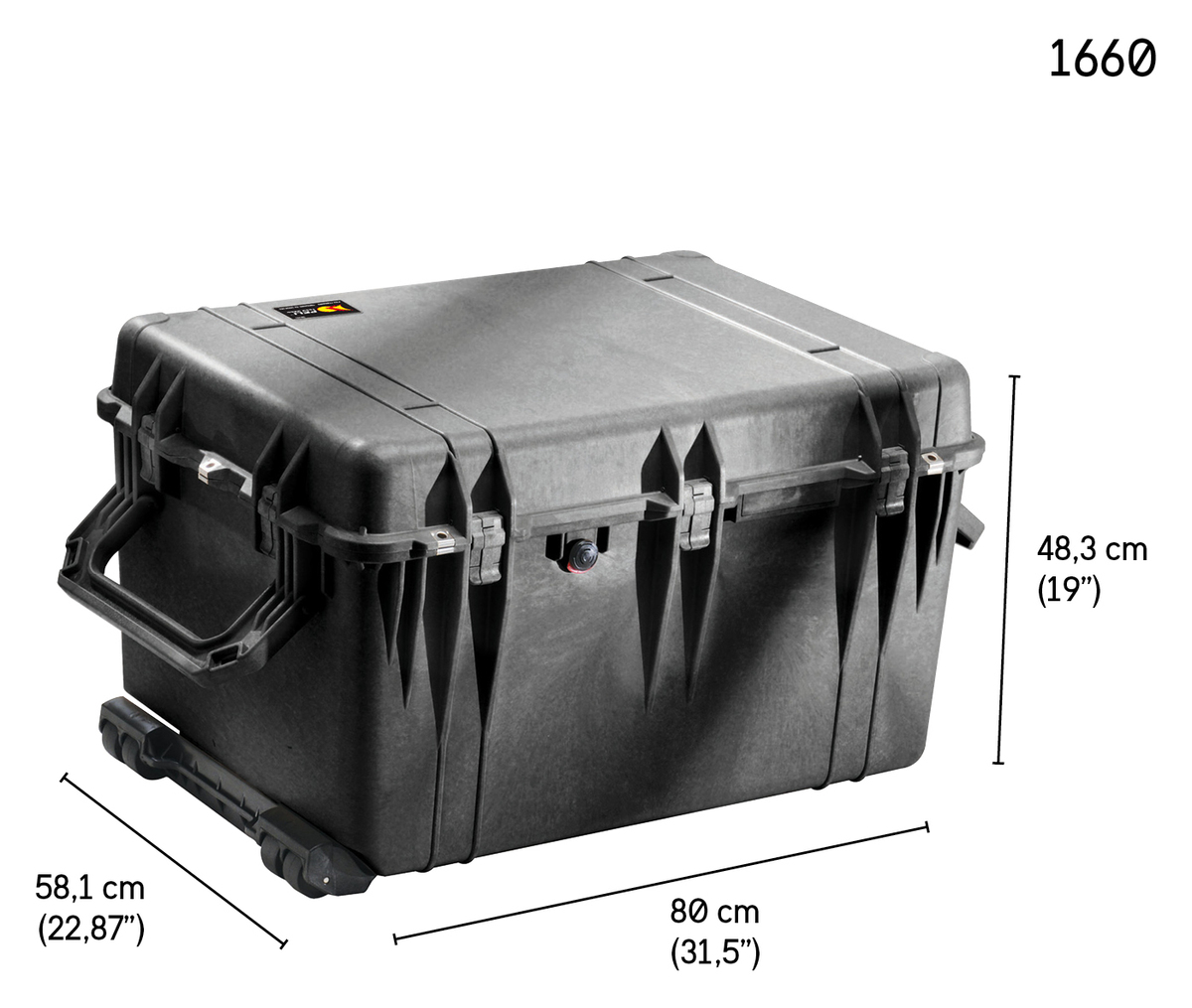 The Peli 1660 Case is watertight and crushproof cases offer total protection in virtually any situation. The body of the Peli case is a structural copolymer resin. Incorporated into the shell of the case is a pressure purge valve to allow pressure equalisation. A neoprene "O" ring in the lid ensures that the tongue and groove seal remains watertight. The hinges and handle interlocks form an integral part of the moulding, making it virtually impossible to break in the event of rough handling. A padlock facility (also an integral part of the moulding) keeps your property safe from roving hands. The outer padlock holes have reinforced metal padlock protectors to ensure the Peli case cannot be easily cut or pried open. Ergonomically designed handles are being introduced throughout the range of Peli Cases. These rubber overmoulded handles are lighter in weight, stronger and more comfortable to use.