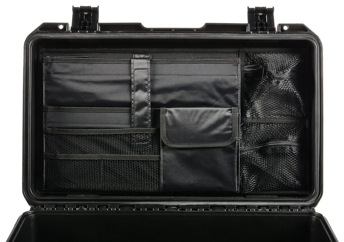PELI™ STORM CASE™ Lid organizers are designed to hold documents, notebooks, and small electronic devices in expandable folder pockets. In addition to folder pockets and sleeves for office supplies, the utility organizers include several versatile mesh nylon zipper pockets. These are perfect for housing items such as PDAs, first aid supplies, film, rechargeable batteries, and camera filters. Every type of organizer is delivered loose—with hook and loop Velcro straps—for you t