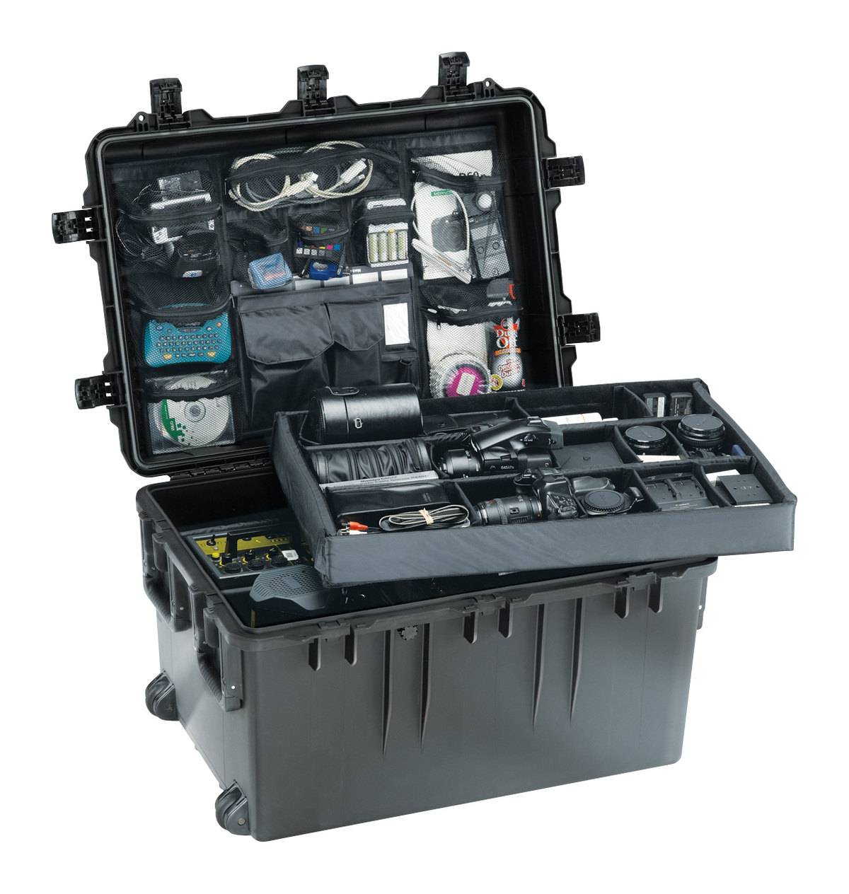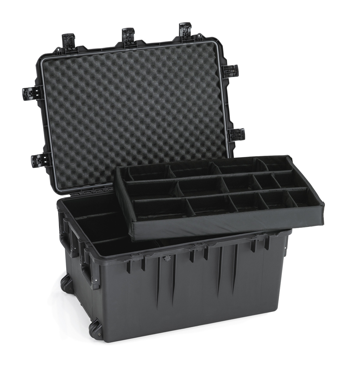 This Peli Storm iM3075 Case divider set is a Padded 4 Wall and Base that has Velcro dividers to make up 1 Base,2 Long Rigid, 2 Short Rigid, 11 Long, 4 Short. Also the second tray has 2 Long and 12 Short added sections within the case.
