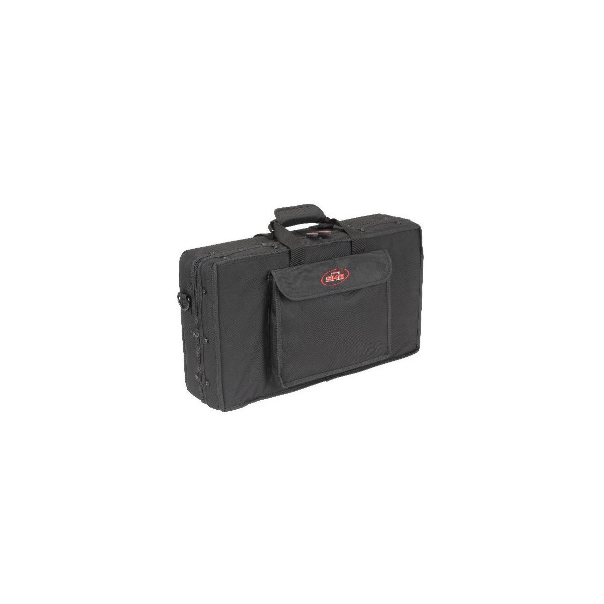 The SKB-SC2111 Controller Soft Case is designed to fit all-in-one effects floor boards (BOSS GT-10, Digitech RP1000, Line6 X3 Live, Vox Tonelab LE and many more) as well as MIDI foot controllers (Roland FC300, etc.)A rigid EPS foam interior is surrounded by a heavy-duty canvas exterior with an exterior zippered pocket. A removable one inch (1") pad of convoluted foam in the lid is provided to allow for various product heights. A shoulder strap and padded carrying handle is also included to make transport simple.