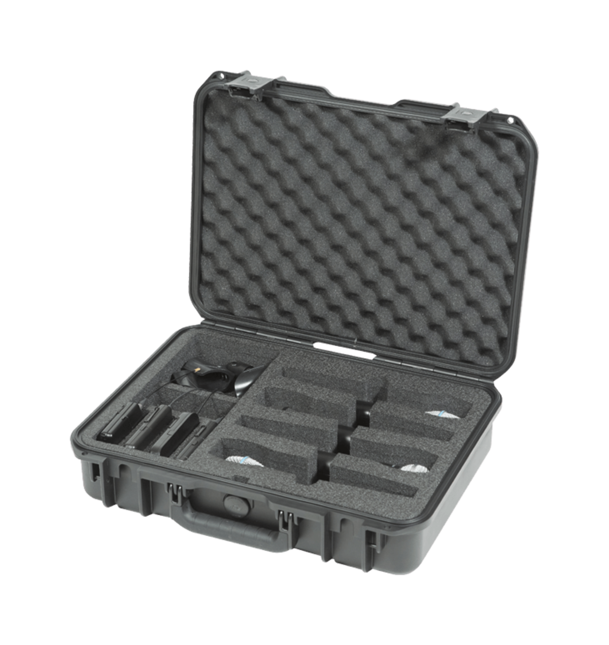 The custom foam interior is designed to cradle each mic and will fit up to four handheld wireless microphones, four wireless body pack transmitters and accessories. Convenient finger holes to quickly grab the microphone and easily slide in the body pack transmitters.