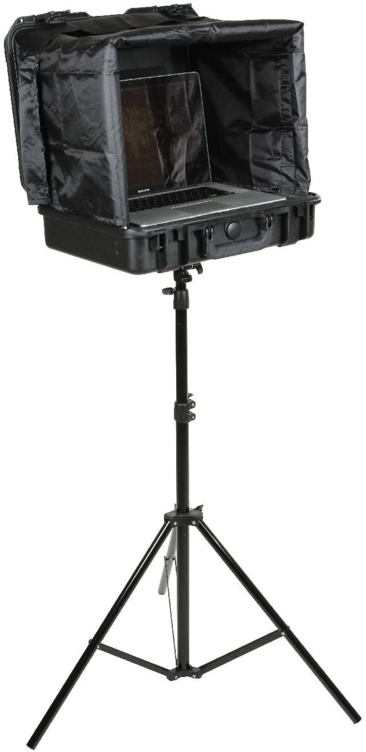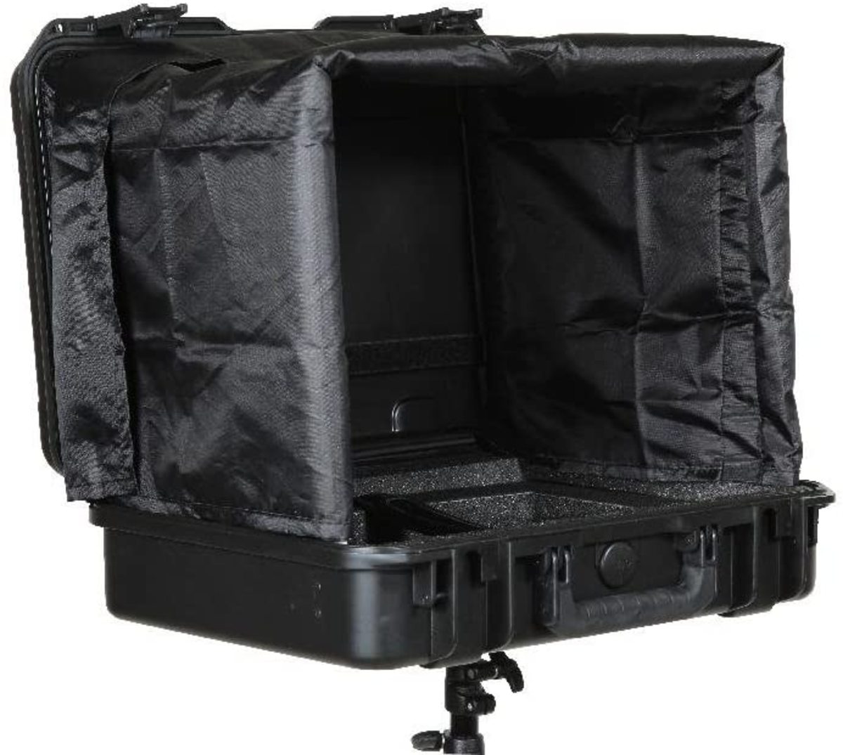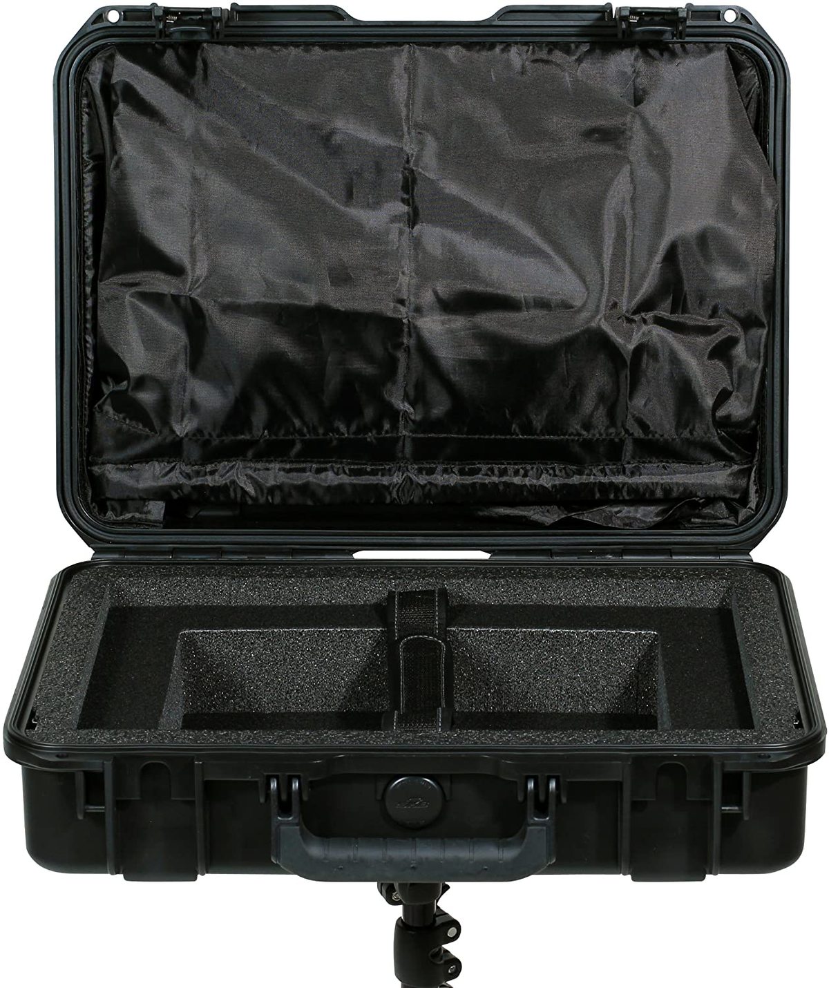SKB has expanded their military-standard waterproof hard cases with custom interiors to accommodate the ever growing pro av market. The 3i-18135SNSC laptop case includes a sun screen that stores in the lid and up to a 17" laptop in the base. An accessory compartment is located under the laptop which is ideal for a power supply or an external hard drive. The suncreen includes a collapsible frame for secure storage. The bottom of the case features a built in 3/8" female thread which is reinforced by a heavy duty metal plate. Any light stand, tripod, or mic stand will work to support the case as long as it has or is adapted to a 3/8" male mount and can handle the weight of the laptop, case, and other accessories.These custom waterproof camera and video cases are backed by SKB's unsurpassed no-fault Lifetime Warranty.About our iSeries SKB's iSeries injection molded waterproof cases are constructed of ultra high-strength polypropylene copolymer resin and feature a gasketed, waterproof and airtight, submersible design (IP67) that is resistant to corrosion and impact damage. Its continuous molded-in hinge, patented "trigger release" latch system, comfortable, snap-down rubber over-molded cushion grip handle, secure stacking, and automatic ambient pressure equalization valve (MIL-STD-648C) all contribute to its military grade design.