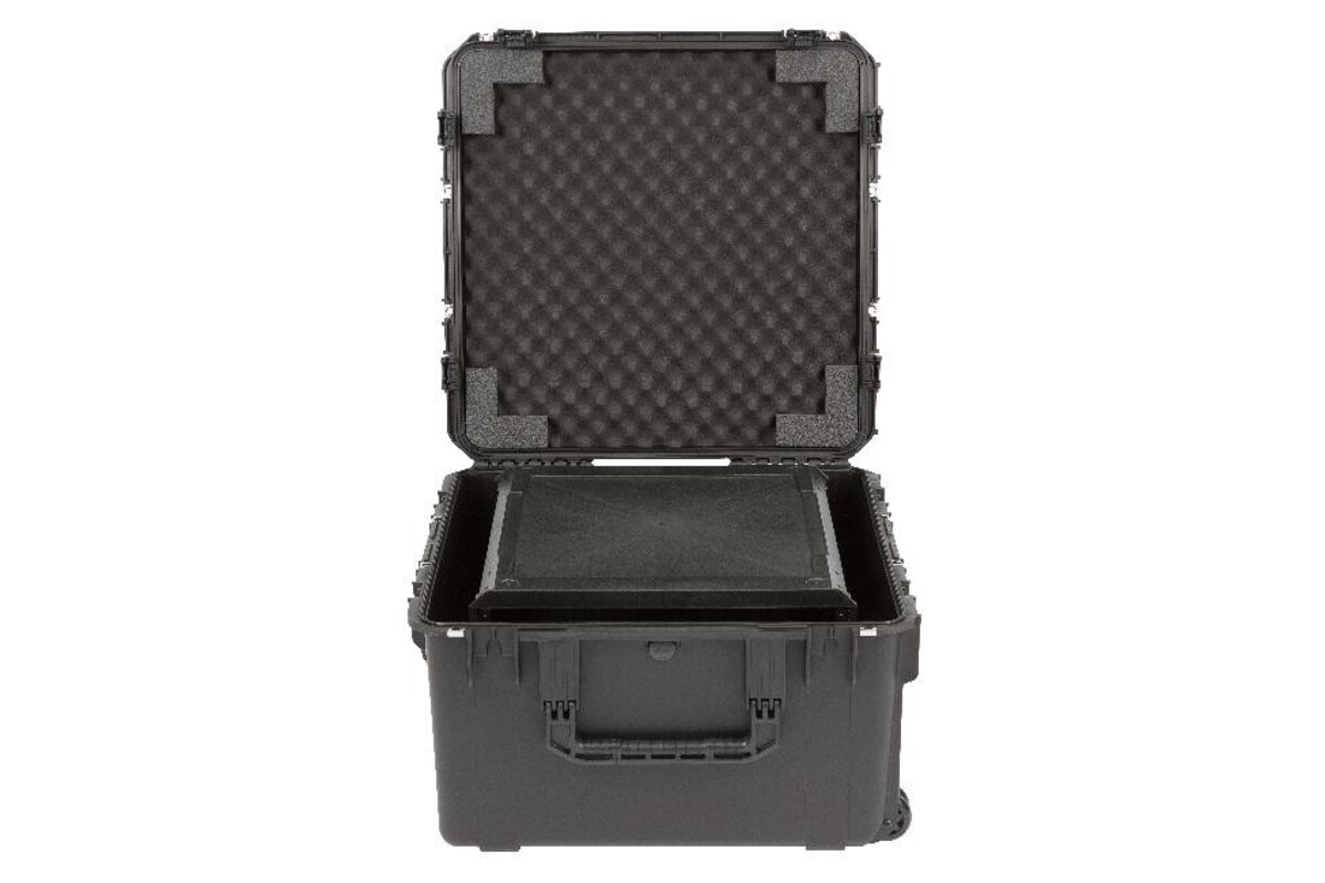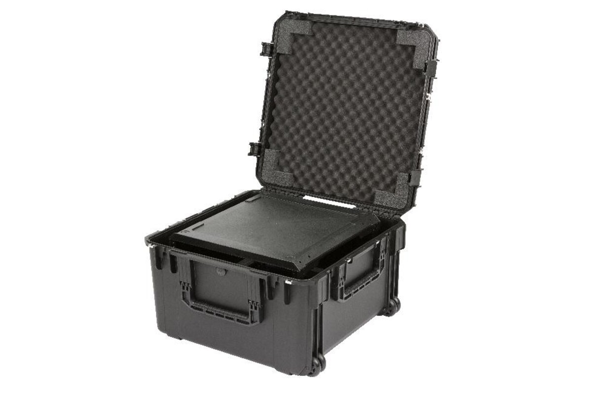 Featuring both injection molded cases and racks, our improved waterproof Fly Racks are lighter in weight and more affordable than previous models, all without compromising strength or durability.SKB's injection molded rack frames are manufactured alongside our iSeries cases in Orange, California. Rack frames are removable and fit easily into SKB's iSeries cases, where they are protected by high quality PE foam that provides space for protruding knobs and buttons.At less than half the weight of standard shock racks, SKB Fly Racks feature iSeries Watertight injection molded cases that are under 62 linear inches to keep from being oversized -- the perfect solution for flying or shipping delicate equipment. Convenient in-line wheels and a push button release pull handle provides easy transport.SKB iSeries Injection Molded Mil-Standard Waterproof Cases are molded of ultra high-strength polypropylene copolymer resin, featuring a gasket-sealed, water and dust tight, submersible design (MIL-C-4150J / IP67). Other standard features include a molded-in hinge, patented trigger release latch system, comfortable, snap-down rubber over-molded cushion grip handle, automatic ambient pressure equalization valve (MIL-STD-648C), and resistance to UV, solvents, corrosion, fungus and impact damage (MIL-STD-810G).