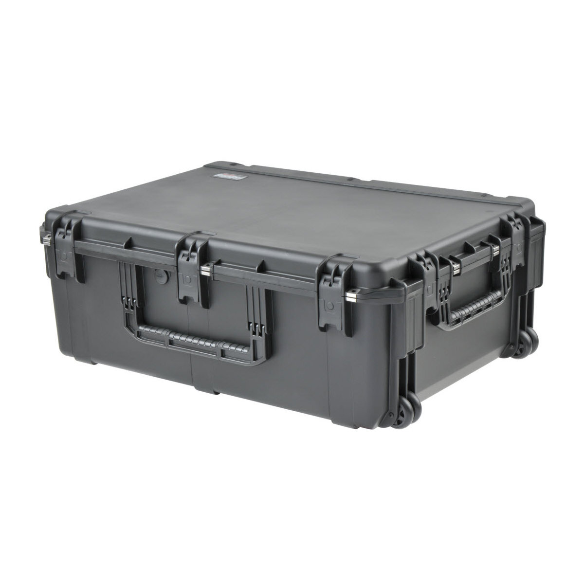 The 3i-3424-12 Utility Case measures an impressive interior dimension of 34,5"x24,5"x12,75" is molded of ultra high-strength polypropylene copolymer resin and features a gasketed, water and dust tight, submersible design (IP67) that is resistant to corrosion and impact damage, and an automatic ambient pressure equalization valve (MIL-STD-648C) to assist with moisture control.This iSeries size is another new size that is being produced on SKB's Energy Saving Hydraulic Toggle Injection Molding System at SKB's manufacturing facility in Orange, California. This injection system is one of the largest and most efficient injection molding systems in the United States.The 3I-3424-12 Utility Case also features three protected hinges with stainless steel pins to provide lid stability, SKB's trigger release latch system can be retrofitted with TSA recognized and accepted locks, an oversized double grip carrying handle to balance a heavy load, and comfortable Oversized snap-down rubber over-molded cushion grip handles on each end for a two person carry or transport. The heavy-duty oversized handle and wide set double wheels offer the perfect solution to comfortable transport of pro audio equipment, cables, hardware, drums or drum accessories.