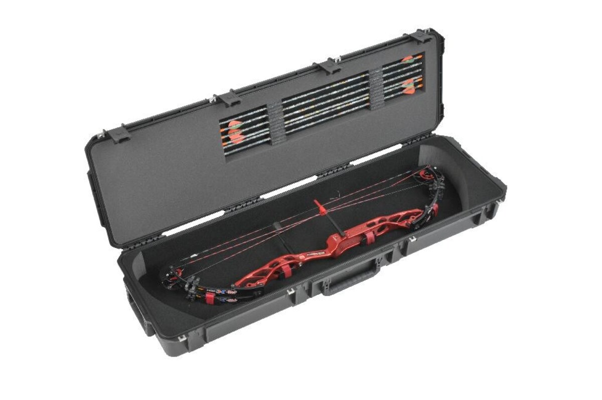 To maximize the benefits of their latest size of MIL-STD Injection Molded Watertight cases, SKB has developed new interiors for the newest iSeries case, the 3i-5014-MPL to accommodate longer bow setups.The Mathews® 5014 Target / Long Bow Case has four (4) SKB patented trigger latches, four reinforced padlock locations, cushioned snap down handles on three (3) sides and recessed, in-line skate style wheels, to ensure that transporting your gear around the world is both worry and trouble free. The interior of the Mathews® 5014 Target / Long Bow Case features a custom foam insert and repositionable tie-downs for secure fit and cushioning of your gear. New state of the art water-jet cut foam arrow system that holds up to a dozen arrows is included.The Mathews® 5014 Target / Long Bow Case case has a uni-body design, which eliminates the need for excessive metal reinforcing hardware found on traditional flight cases.SKB iSeries injection-molded waterproof cases are constructed of ultra-high-strength polypropylene copolymer resin and feature a gasketed, waterproof and dustproof, submersible design (IP67) that is resistant to corrosion and impact damage. The molded-in hinge with stainless steel hinge pins, patented "trigger release" latch system, comfortable, snap-down rubber over-molded cushion grip handles, secure stacking, and automatic ambient pressure equalization valve (MIL-STD-648C) all contribute to its military grade design.The Mathews® 5014 Target / Long Bow Case is covered by SKB's unsurpassed Lifetime Warranty and the $1500 Content Coverage if your gear is damaged by an airline.