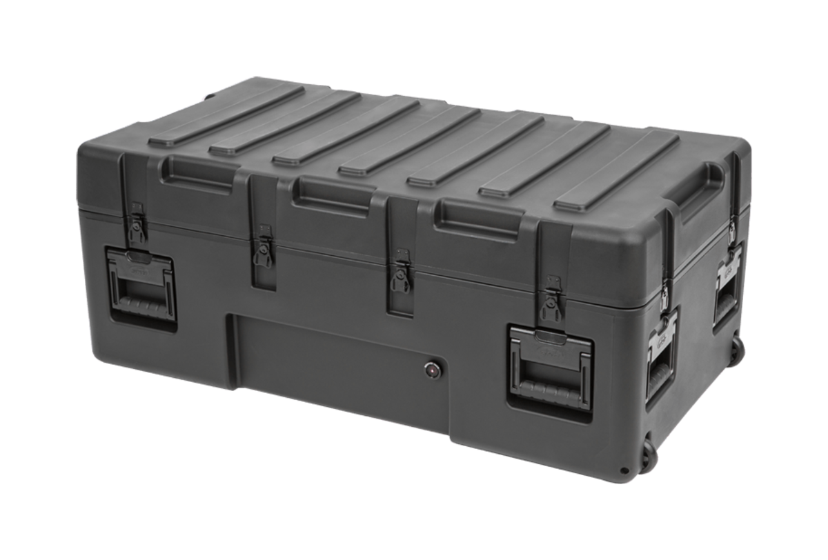These Mil-Standard cases were designed to meet the most demanding military specifications. They are roto-molded for strength and durability, airtight and water proof with solid stainless steel latches and hinges that will withstand the most demanding shipping conditions.The 3R Mil-Std. Cases are molded of (LLDPE) polyethylene impact resistant / UV stabilized material and meet or exceed MIL-STD 810 and MIL-C-4150J specifications.The shipping cases are all available with an empty interior while some models are available with: cubed foam, layered foam, padded dividers, and a pull handle with wheels.Wheel options vary by case.