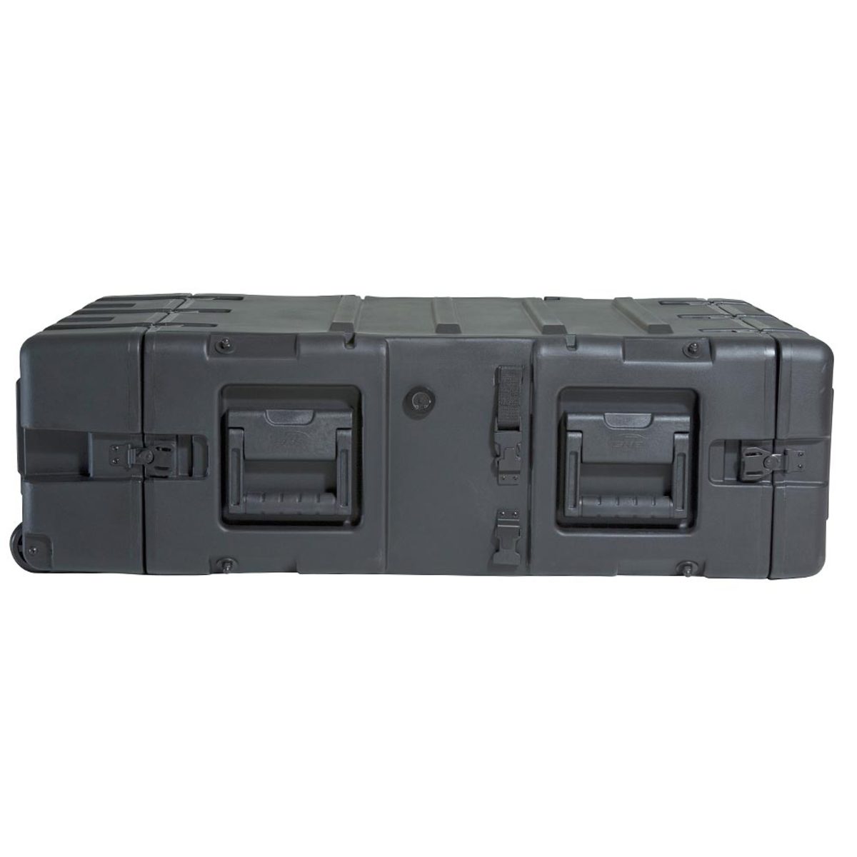 The rugged roto-moulded shell ensures industry leading strength and impact resistance. The standard COTS (commercial off the shelf) case comes with a 2” deep front lid and a 5” deep rear lid to accommodate rack gear that is longer than 24”, and edge casters to allow convenient case transport. Moulded-in stacking ribs and lugs are designed to stack with competitive manufacturers cases. Black powder coated stainless steel hardware are recessed for protection is standard as well as 8 comfort grip spring loaded lift handles which allow for easy movement. An automatic pressure relief valve is another standard feature along with gasket sealed lids that include convenient lid hangers to store your lids when your equipment is in operation. Coupling straps are included for securing the racks together when stacked.